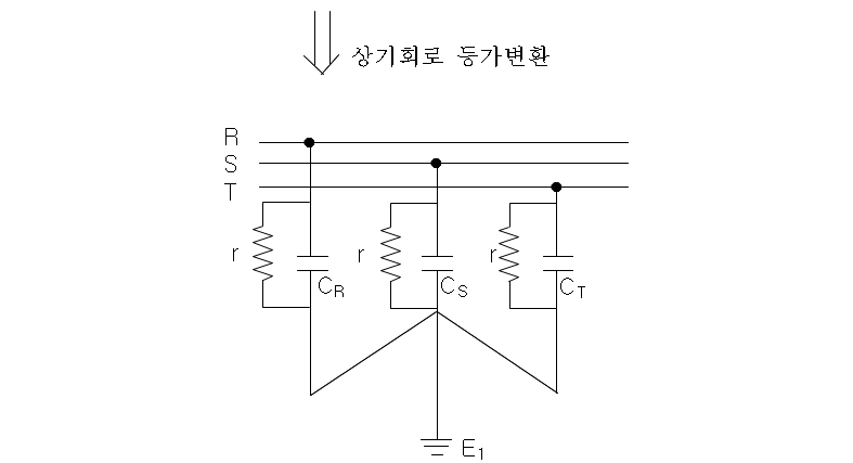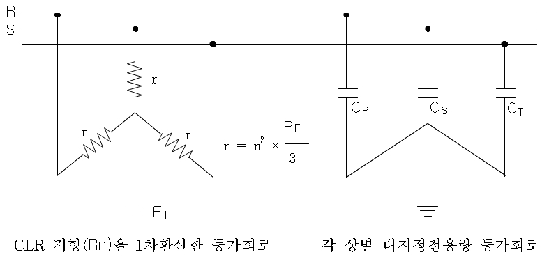 CLR를 1차로 등가변환하면 그림15처럼 대지정전용량C(㎌)와 병렬회로로 등가변환 할 수가 있다.