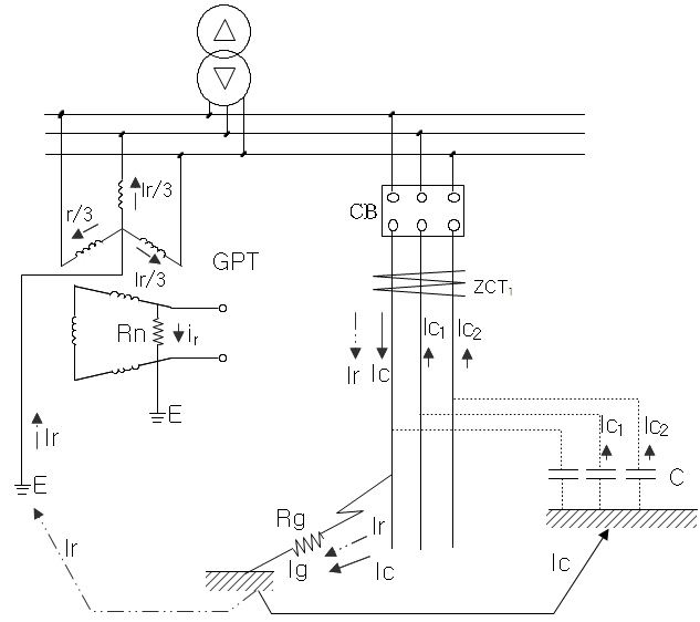 ir : 1선지락시 GPT 3차 한류저항기에 흐르는 전류