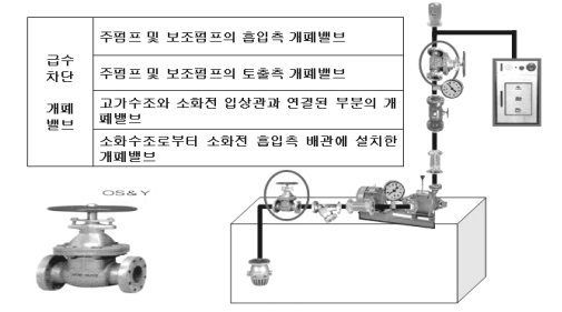 ◦ 주 펌프와 동등 이상의 성능이 있는 별도의 펌프로서 내연기관의 기동과 연동하여 작동되거나 비상전원을 연결하여 설치한 경우나,