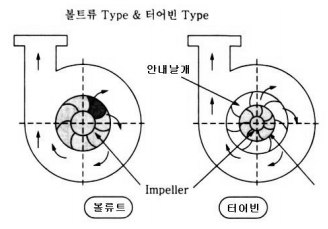 안내날개가 없으며 이로 인하여 Impeller가 직접 물을 Casing으로 유도하는 펌프로서 저양정 펌프에 사용한다.