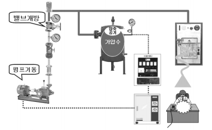㉤ 압력챔버 배수밸브 개방후 펌프 기동하면 폐쇄