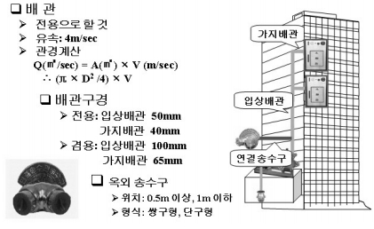 2) 배관은 전용으로 하여야 한다.(성능에 지장이 없는 경우에는 다른 설비와 겸용 가능)