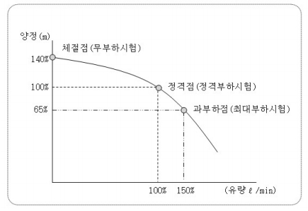 (1) 정격토출량(설계수량)의 150%를 방사하여도 전 양정은 정격양정의 65%이상이 되어야 한다.