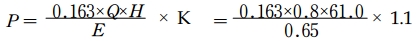 ※ 여유율 10%를 고려하여 55.3 × 1.10 = 60.8m 따라서, 실제 적용 전양정