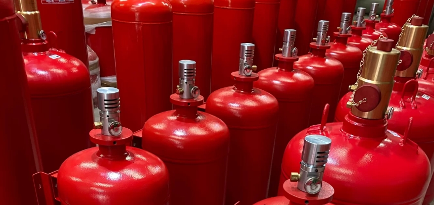 가스계소화설비에서 약제저장용기는 68ℓ -80ℓ를, 배관은 40㎜~65㎜를 주로 사용하고 있다.