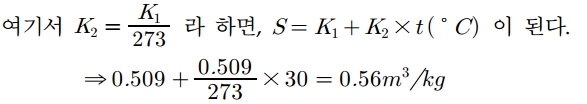 ◦ S(㎥/kg) : 비체적(Specific volume) S= K 1 + K 2×T(CENTIGRADE)