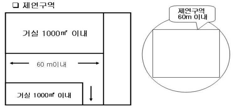 ① 거실 : 하나의 제연구역은 직경 60m 원내에 들어갈 수 있어야 한다.