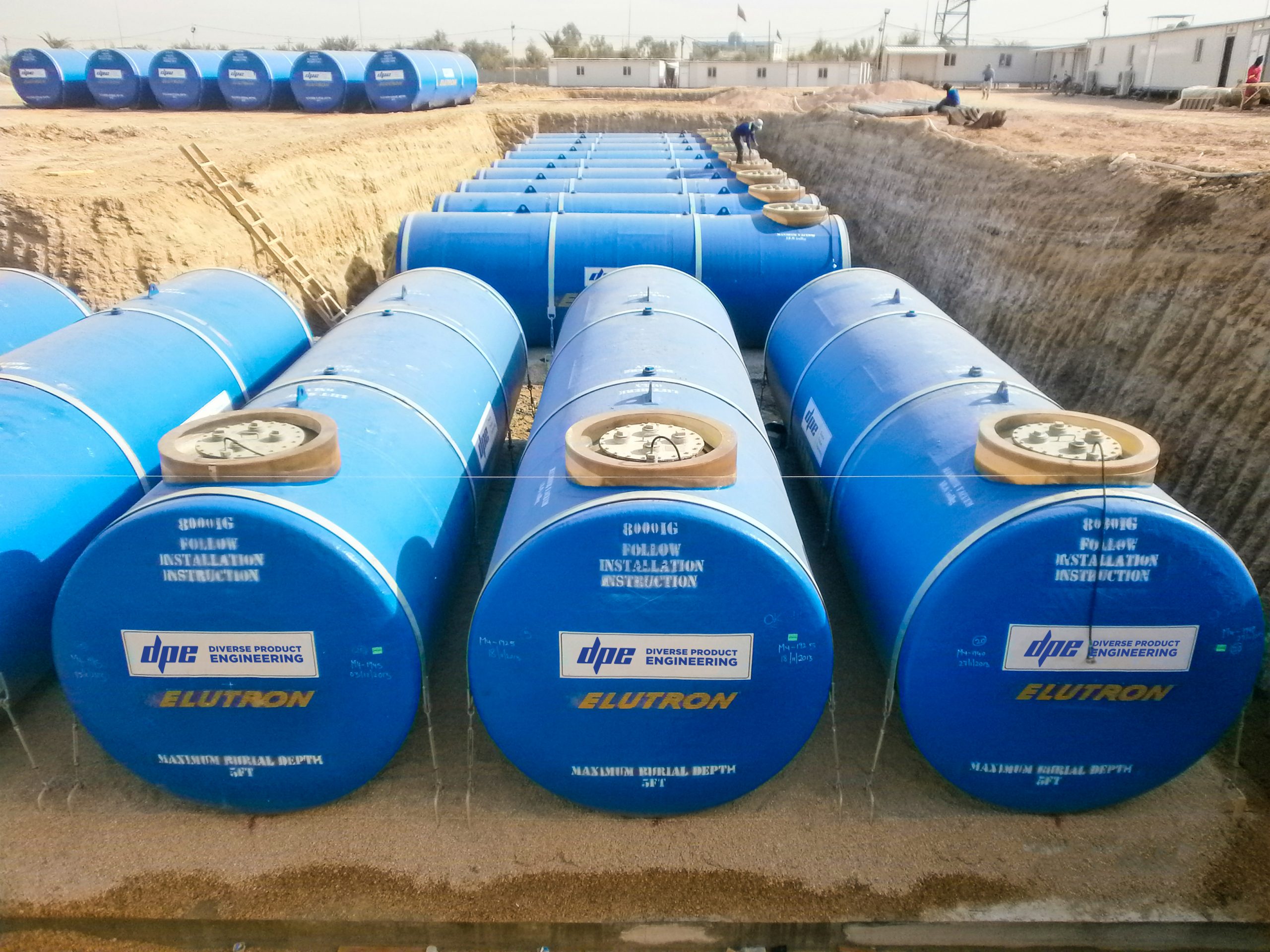 하나의 취급탱크 주위에 설치하는 방유제의 용량은 당해 탱크용량의 50%이상으로 하고, 2이상의 취급탱크 주위에 하나의 방유제를 설치하는 경우 그 방유제의 용량은 당해 탱크중 용량이 최대인 것의 50%에 나머지 탱크용량 합계의 10%를 가산한 양 이상이 되게 해야 한다. 이 경우 방유제의 용량은 당해 방유제의 내용적에서 용량이 최대인 탱크외의 탱크의 방유제 높이 이하 부분의 용적 당해 방유제 내에 있는 모든 탱크의 지반면 이상 부분의 기초의 체적 간막이 둑의 체적 및 당해 방유제 내에 있는 배관 등의 체적을 뺀 것으로 한다.