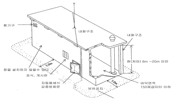 · 저장창고의 벽 기둥 바닥 보 및 지붕은 내화구조로 한다.