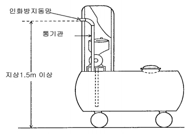 ② 옥외에 설치하되 통기관 선단의 높이는 배출되는 증기가 확산이 쉽도록 지상 1.5m이상의 높이로 하여야 한다.