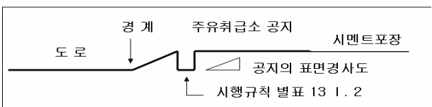공지의 바닥은 주위 지면보다 높게 하고 그 표면을 적당하게 경사지게 하여 새어나온 기름 그 밖의 액체가 공지의 외부로 유출되지 아니하도록 배수구 집유설비 및 유분리장치를 하여야 한다.