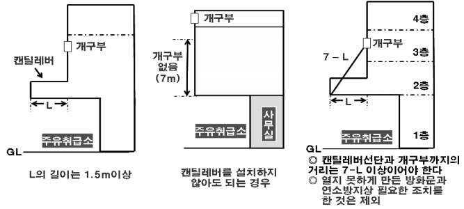 · 주유취급소 내의 지반면으로부터 70cm를 초과하는 부분에 한하여 유리를 부착할 것