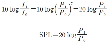 음의 세기는 음압의 제곱에 비례하므로 음압 레벨을 구하는 수식은 음세기의 레벨을 구하는 식에서 얻을 수 있다. I는 Intensity의 약자로서 세기를 나타내며, P는 Pressure의 약자로서 음압을 나타낸다.