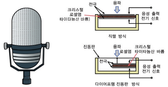 무전기 등에 쓰이는 마이크이다. 통신병의 군용 무전기에도 이 크리스털 마이크가 쓰였다. 크리스털 마이크는 압전 효과를 이용하여 쉽게 큰 출력을 얻을 수 있으나 주파수 특성이 80 Hz∼6.5 kHz 정도로 좋지 않다.