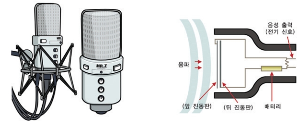 마이크로폰(microphone)을 줄여 마이크(mic)라고 부른다. 마이크는 소리를 전기 신호로 바꾸어 주는 변환 장치이며 음파 에너지를 전기 에너지로 바꿔 주는 에너지 변환기이다. 마이크의 구성은 음압에 의하여 생긴 진동을 받아들이는 진동판과 이 판의 떨림을 전기 신호로 변환하는 변환부 그리고 출력부의 세 부분으로 구성된다.