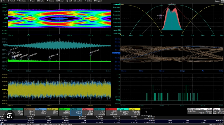 아이 패턴에서 eye가 충분하게 열려져 있다면 데이터는 완벽하게 복원될 수 있다. 시리얼 디지털 신호의 지터를 오실로스코프를 이용하여 측정한다.