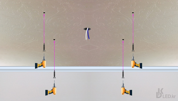 전기드릴 등으로 천장에 먼저 구멍을 내야 합니다.