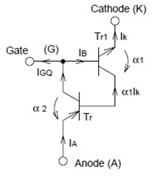온 상태에서 캐소드 전압에 가까운 애노드에 대한 게이트 단자의 음의 전압은 사이리스터를 오프 상태로 만듭니다.