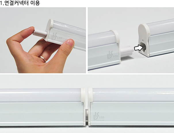 T5 LED조명은 최대 6m까지 직렬로 연결이 가능한 조명인테리어 제품이며, 두가지 연결방법이 있습니다.