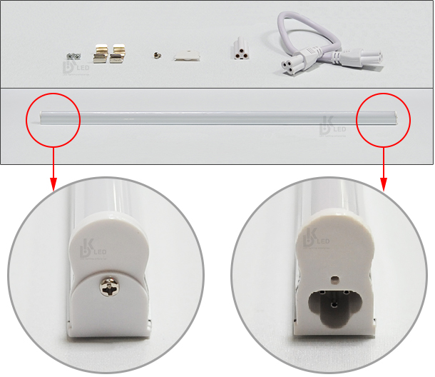 T5 LED조명은 램프의 끝이 한쪽은 막혀 있고, 다른 한쪽은 막혀있지 않은 상태로 배송됩니다.