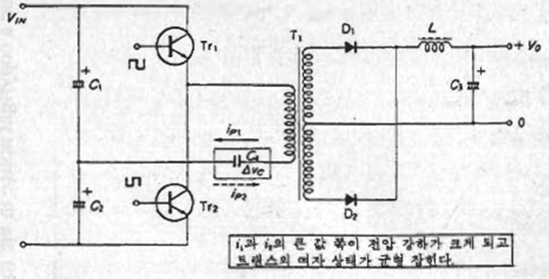 Push-Pull회로의 경우 양 Trans의 Turn-On시간사이에 Dead Time을 어느 정도 설정함으로써 편여자 현상을 방지할 수 있다.
