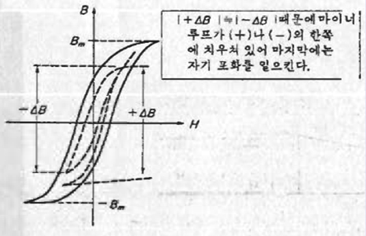 B-H곡선의 자속 밀도 변화는 상승하는 변화분과 하강하는 변화분 등이 같아야 한다. 하지만 2개의 스위칭 트랜지스터의 축적 시간 tstg에 불균형이 있으면 반드시 이렇게 되지 않고 자속 밀도가 상하 어느 쪽으로 치우친다.
