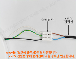 2. 천장에서 내려오는 220V 전원선을 전원단자에 꽂아서 연결합니다.