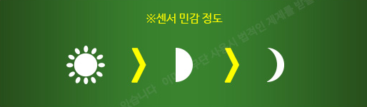 예를 들어, 태양 모양으로 설정했을 경우 센서의 민감도는 높으니 대낮에 주변이 밝아도 켜집니다.
