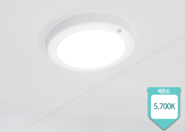현관센서등의 적용된 색온도 5700K는 푸른빛(블루라이트)이 없는 화이트 LED조명입니다.