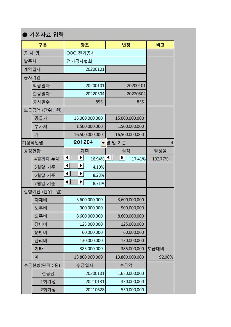 기성청구 및 원가분석_Excel프로그램