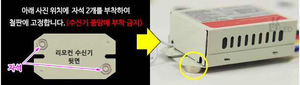(옵션에서 자석을 추가 구매하시는 경우 수신기에 자석2개를 부착하여