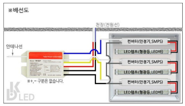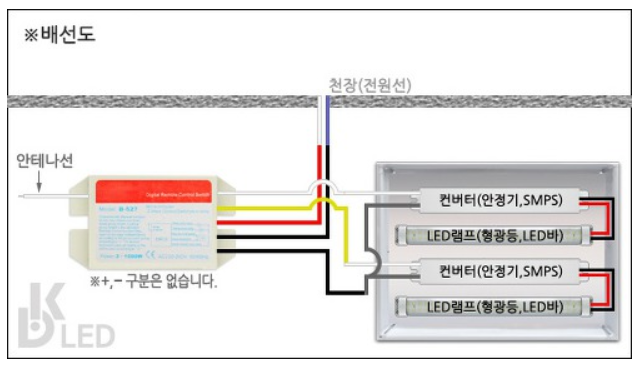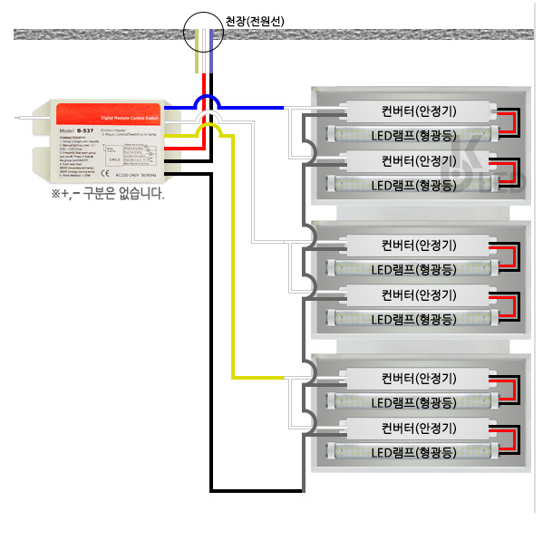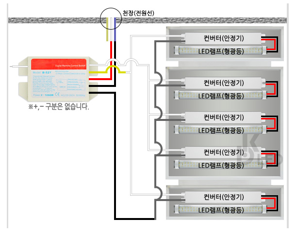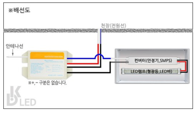 LED리모컨 수신기를 컨버터(안정기)에 연결만 하면 설치 끝입니다.