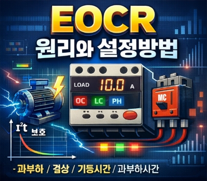 모터는 고가 장비입니다. 만약 과전류나 결상 사고가 발생했는데 차단되지 않는다면, 모터 내부 코일이 녹아내려(소손) 수리비가 수백만 원 이상 들 수 있고 공장 라인이 멈추는 큰 피해가 발생합니다. EOCR은 몇만 원대의 저렴한 비용으로 이런 대형 사고를 확실하게 막아주는 가성비 최고의 안전장치입니다.