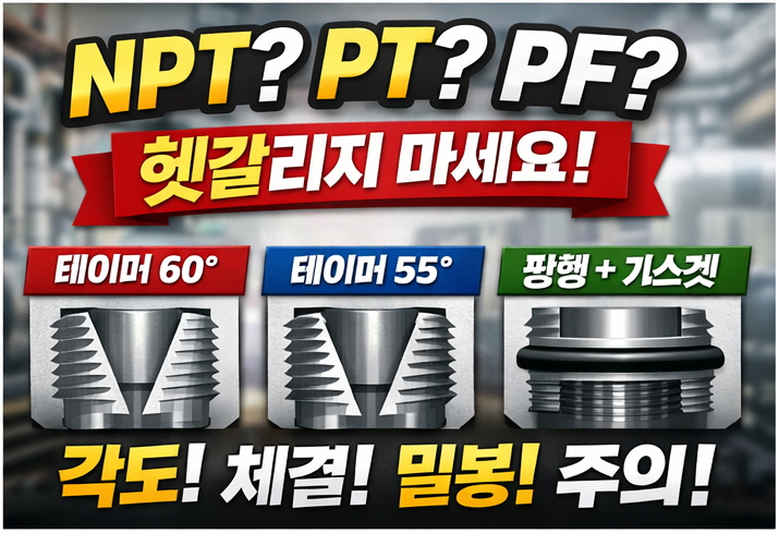 오늘은 NPT / PT / PF 차이점과 구조 원리, 호환 가능 여부, 실무 체크 방법까지 한 번에 정리해보겠습니다.
