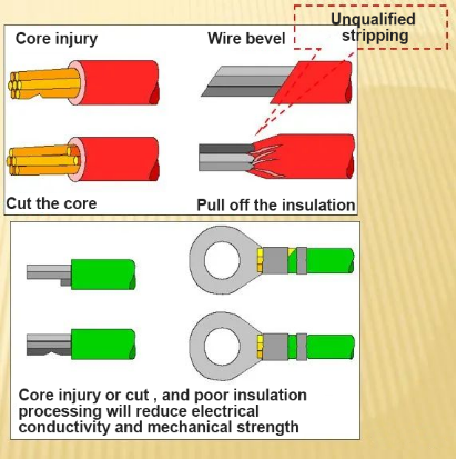 · 과압착 → 단자 찌그러짐, 가닥 절단