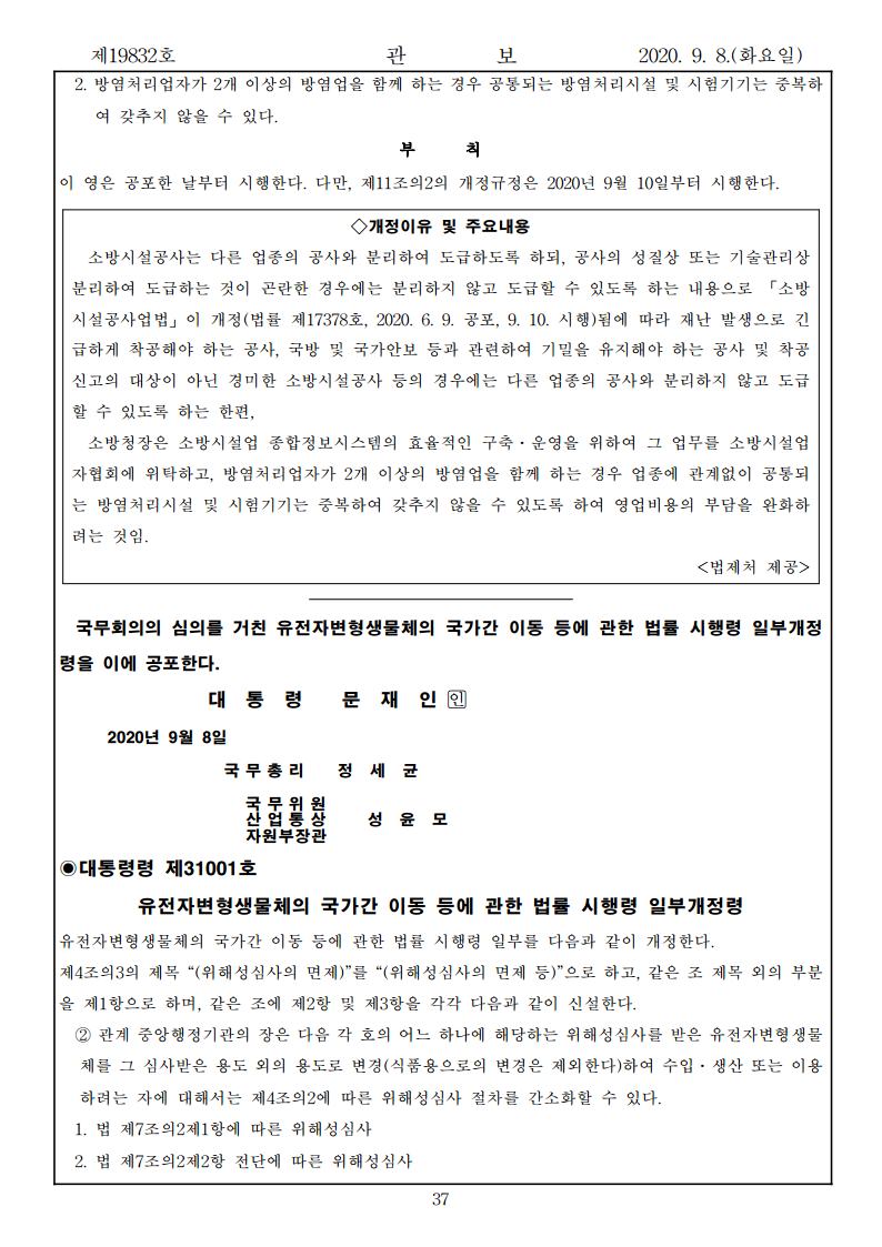 「소방시설공사업법 시행령」 일부 개정되어(대통령령 31000호)되어 아래와 같이 공포되었음을 알려드립니다.