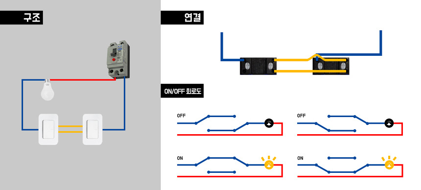 3로는 하나의 등을 두개의 스위치로 조작합니다.