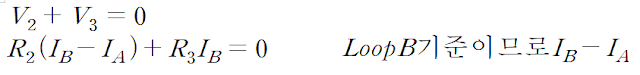 (R2에 흐르는 전류는 Loop A와 Loop B가 모두 포함되므로, 두 전류의 값을 더하되, 방향이 서로 반대이므로)
