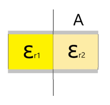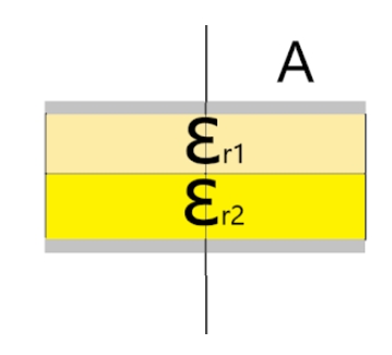 그렇다면, 만약 아래와 같이 유전율이 각각 다른 두 Dielectric이 직렬로 연결되었을 때,