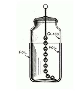 이는 유리병 안에 담긴 물속에 전하가 저장될 수 있음을 발견한 것입니다.