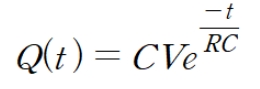 즉, 초기 전하량은 CV이며, 지수함수적으로 감소합니다.
