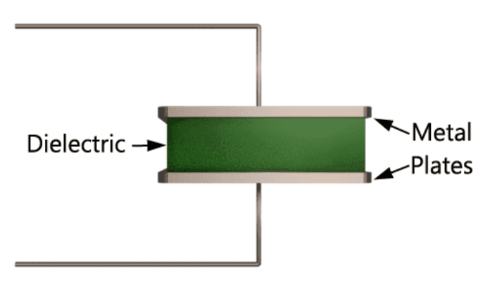 (Dielectric은 절연체이므로 도체판 사이로 전류가 흐르지는 않음)