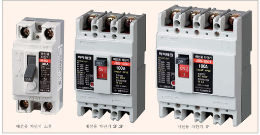 10KW용량에 220V 단상일 경우 : 10000/220=45.45[A] 차단기 50[A]