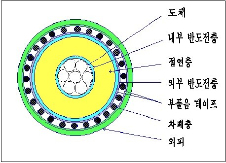 케이블에서는 동테이프로 된 차폐층을 둔 구조(CV-CU케이블, 통상 CV케이블로 불린다.)로 되어있다.