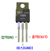사진의 우측에 있는 IC는 7805라는 것으로, 출력은 +5V의 전압에서 전류는 500mA~1A를 얻을 수 있다(방열기의 부착 방법에 따라 달라진다).