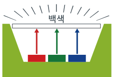빛의 삼원색인 LED를 조합하여 백색광을 얻는 방법.