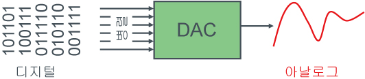 자연계 현상에서 A/D 변환하여 디지털 신호를 처리한 후 자연계 값으로 변환시키기 위해 D/A 컨버터가 탑재됩니다.