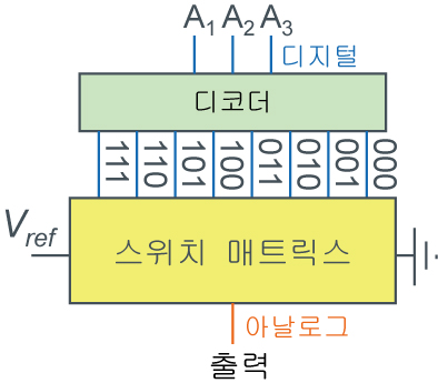 디지털 값을 한번 변환한 후 회로로 내보내는 경우를 디코더 방식이라고 합니다.