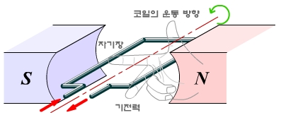 자기장이 존재하는 공간에서 코일을 회전시키면 전류가 발생하는데, 코일은 회전하면서 자석의 N극과 S극의 자리를 서로 번갈아 지나므로 발생하는 기전력은 교류가 된다.
