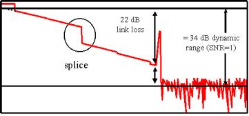 ⑸ 운용중 광케이블의 외피손상이나, 절곡 등으로 인해 광섬유손상이 예상될 경우는 후방 산란법에 의한 광섬유 손실을 측정하고 파형을 분석한다.